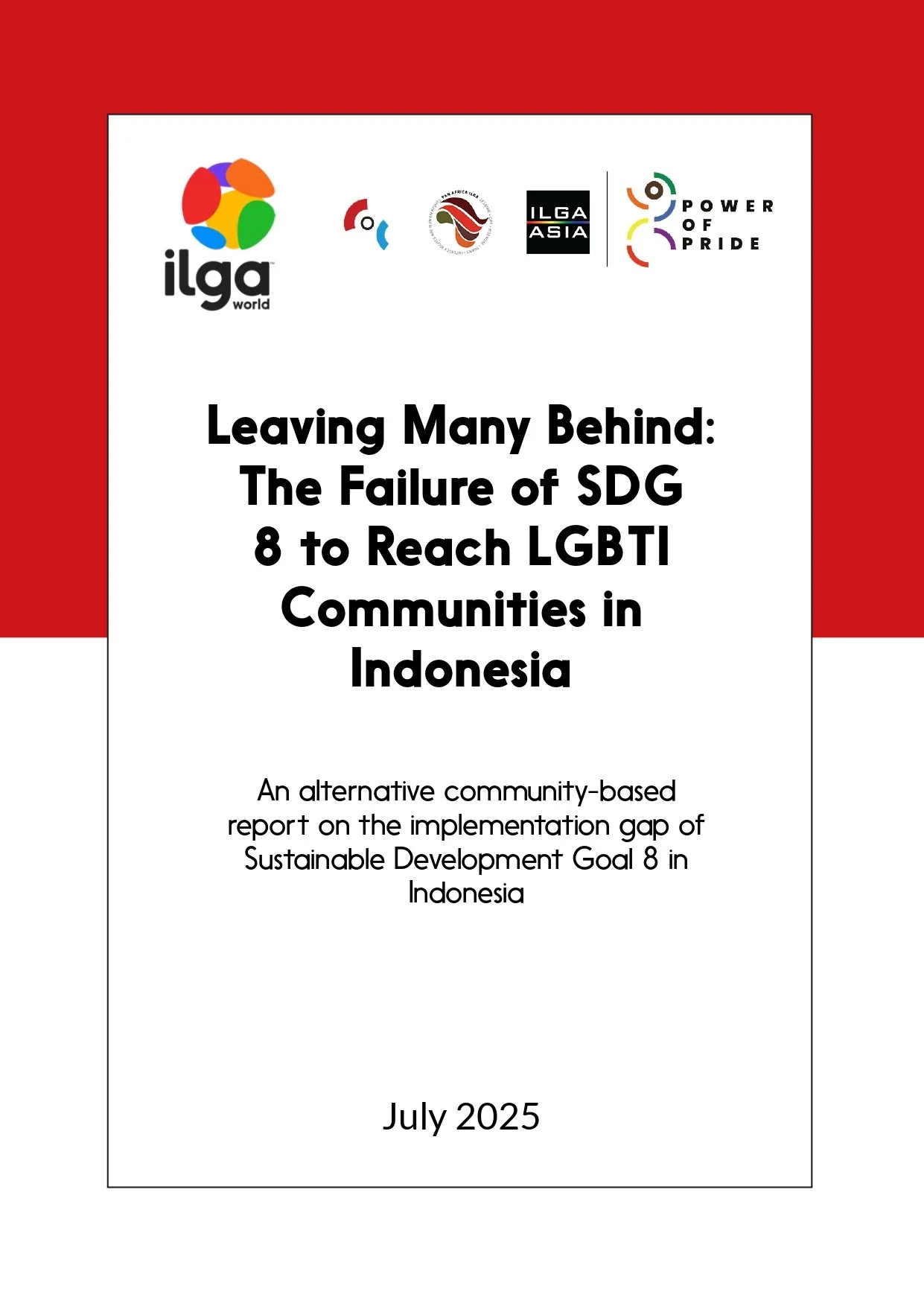 This report, developed with technical and logistical support from ILGA World and COC Nederland, explores the persistent exclusion of LGBTI communities in Indonesia within the framework of Sustainable Development Goal 8: Decent Work and Economic Growth. Despite Indonesia’s commitment to the principle of “leave no one behind,” the report reveals that LGBTI individuals continue to face systemic discrimination, policy neglect, and data erasure that undermine their access to economic opportunities.